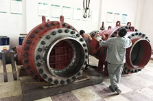 捷報:公司提前10天全面完成國電芝麻田電站三臺800-64水輪機進水主閥的生產